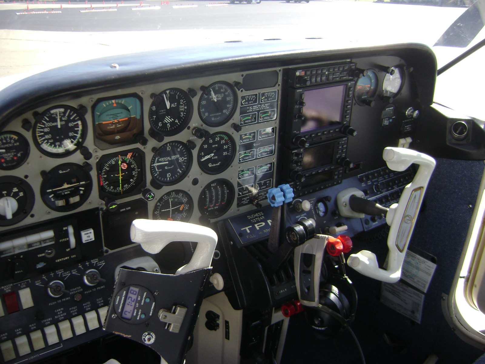 This strong, low time Duchess features a super Garmin stack with G530, G430 and GTX 330 Mods S transponder with Traffic. XM weather and music. Century III Autopilot with Altitude Hold and HSI. Only 2,615 TTAF with just 418 hours on Factory Reman engines and props. Solid mechanically, this Duchess will make an excellent training aircraft or personal twin.